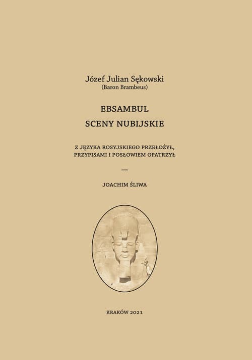 Ebsambul. Sceny nubijskie to jeden z mniej znanych tekstów Józefa Juliana Sękowskiego (1800-1858), pomyślany przez autora jako coś w rodzaju satyry lub humoreski. W opowiadaniu tym wyraził Sękowski swój stosunek do ówczesnej sytuacji panującej nie tyle w samym Egipcie, lecz w kręgach coraz częściej tu przybywających podróżników oraz wśród tzw. starożytników, których nazywał wręcz „przedsiębiorcami starożytności”. Jak w krzywym zwierciadle ukazał też inne negatywne zjawiska w rodzącej się egiptologii, jak chociażby nieograniczoną swobodę umożliwiającą wywóz zabytków oraz lekceważący, paternalistyczny i pozbawiony zazwyczaj szacunku stosunek podróżników/badaczy do ludności miejscowej, jej wierzeń i lokalnych tradycji. Józef Julian Sękowski (1800-1858) to jeden z najwybitniejszych orientalistów swej epoki, podróżnik, badacz, tłumacz i wydawca tekstów źródłowych, ponadto wykładowca i profesor uniwersytecki. Odegrał też istotną rolę w życiu literackim Rosji pierwszej połowy XIX wieku; jako literat i publicysta rozpoznawany był głównie pod pseudonimem „Baron Brambeus”. Jako badacz, krytykując postawę zachodnich orientalistów, usiłujących zgłębiać tajniki Wschodu niejako z zewnątrz, postulował konieczność głębszego zaangażowania i zerwania z europocentrycznym punktem widzenia.