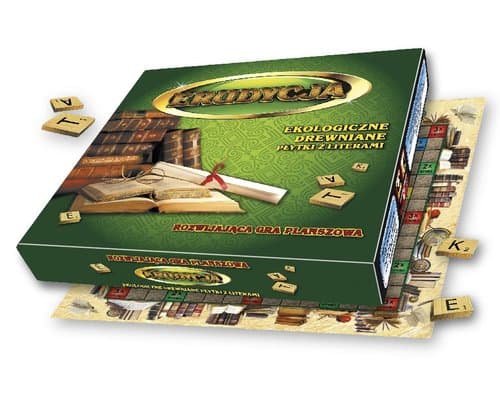 Erudycja - jest niezwykle ekscytującą słowną grą planszową, która idealnie nadaje się do ciekawego i pożytecznego spędzenia czasu w gronie rodziny i przyjaciół. Gra poszerza słownictwo, ćwiczy spostrzegawczość i refleks. Wynik gry zależny bezpośrednio od umiejętności gracza. W grze może uczestniczyć od 2 do 4 osób. W swoim założeniu gra jest oparta na prostym pomyśle krzyżówki. Wyrazy muszą być układane poziomo lub pionowo i powinny być odczytywane od lewej do prawej lub od góry do dołu. Nowe wyrazy muszą zawierać w sobie te wcześniej ułożone lub litery wyrazów znajdujących się obok. W grze dozwolone jest układanie wyrazów znajdujących się w słownikach języka polskiego. Celem gry jest zdobycie maksymalnej liczby punktów. Niniejsza wersja gry różni się od innych gier słownych zasadami oraz jakością i sposobem wykonania komponentów. Gra zawiera: planszę w kształcie kwadratu podzielonego na komórki o bokach 15 x 15 (łącznie 225 komórek), lnianego woreczka z zestawem wysokiej jakości ekologicznych drewnianych płytek z literami oraz ich nominałem - 100 szt., tekturowego stojaka na litery - 4 szt.