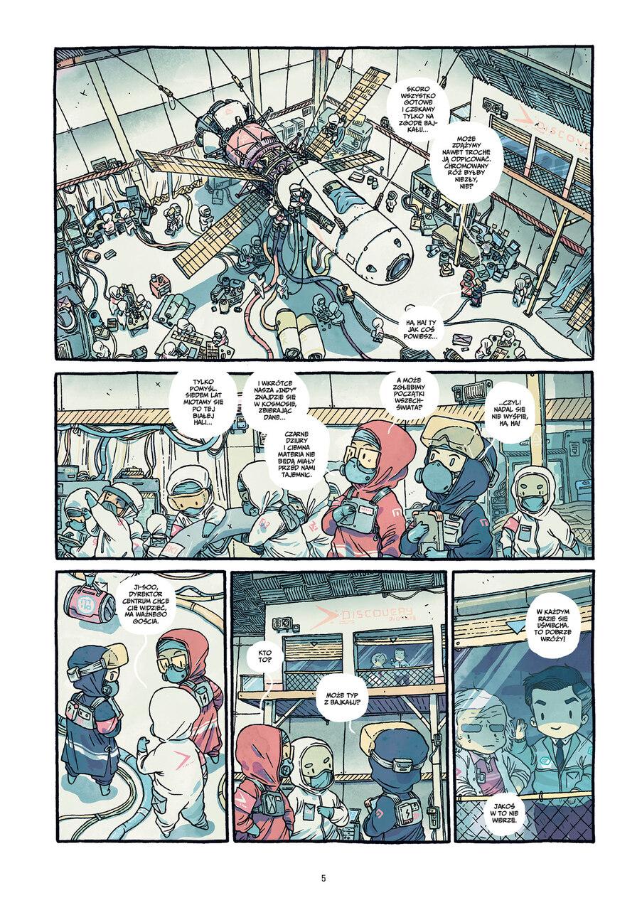 Ten komiks opowiada o codzienności ludzi żyjących w nowym świecie, gdzieś na rubieżach znanego wszechświata, w całkowitym oderwaniu od swojej kolebki. Ziemia dusi się z powodu wyeksploatowania ostatnich zasobów, ostatnią nadzieją ludzkości są niezbadane przestrzenie poza granicami Układu Słonecznego. Historię podboju kosmosu śledzimy przez pryzmat burzliwych losów trójki bohaterów: naukowca Ji-soo, najemniczki Caminy i górnika Alexa. Rzadko trafia się takie połączenie - mądre i ambitne ekologiczne SF w zaskakującej, realistyczno-cartoonowej oprawie Guillaume Singelina - jednego z niekwestionowanych mistrzów współczesnego komiksu.
