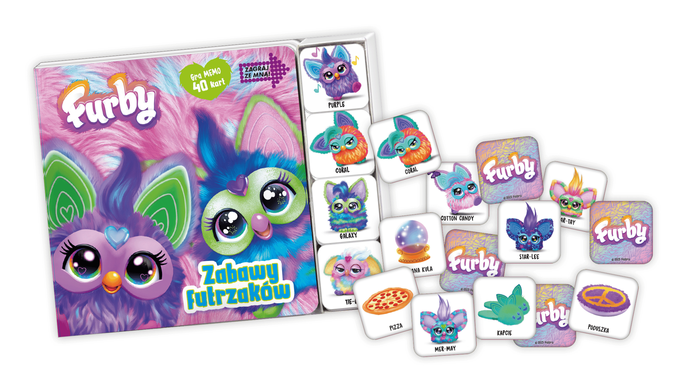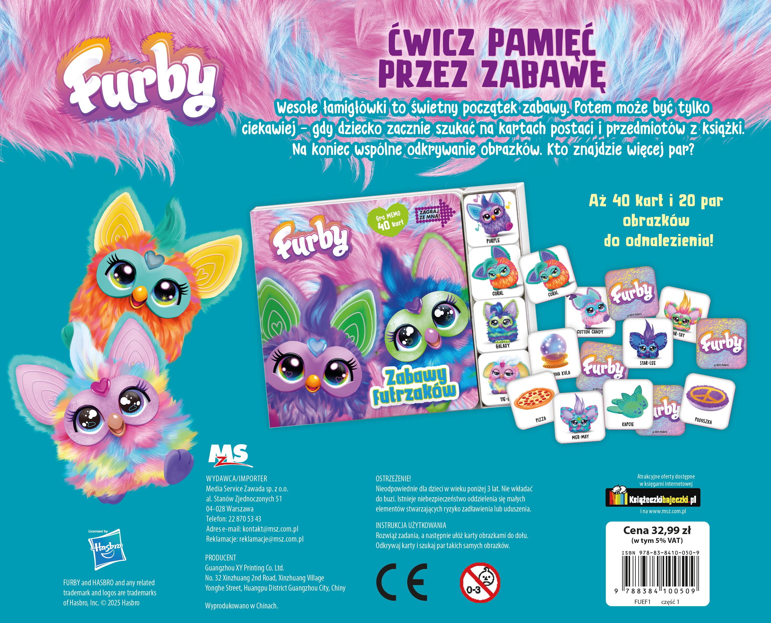 Wyjątkowa książka z kartami do gry! Wesołe łamigłówki z futrzastymi słodziakami Furby to świetny początek zabawy. Potem może być tylko ciekawiej - gdy dziecko zacznie szukać na kartach postaci i przedmiotów z książki. Na koniec wspólne odkrywanie obrazków. Kto znajdzie więcej par? Książka jest doskonałą propozycją dla najmłodszych, łączącą ćwiczenie pamięci i zabawę! Aż 40 kart, czyli 20 par obrazków do odnalezienia!
