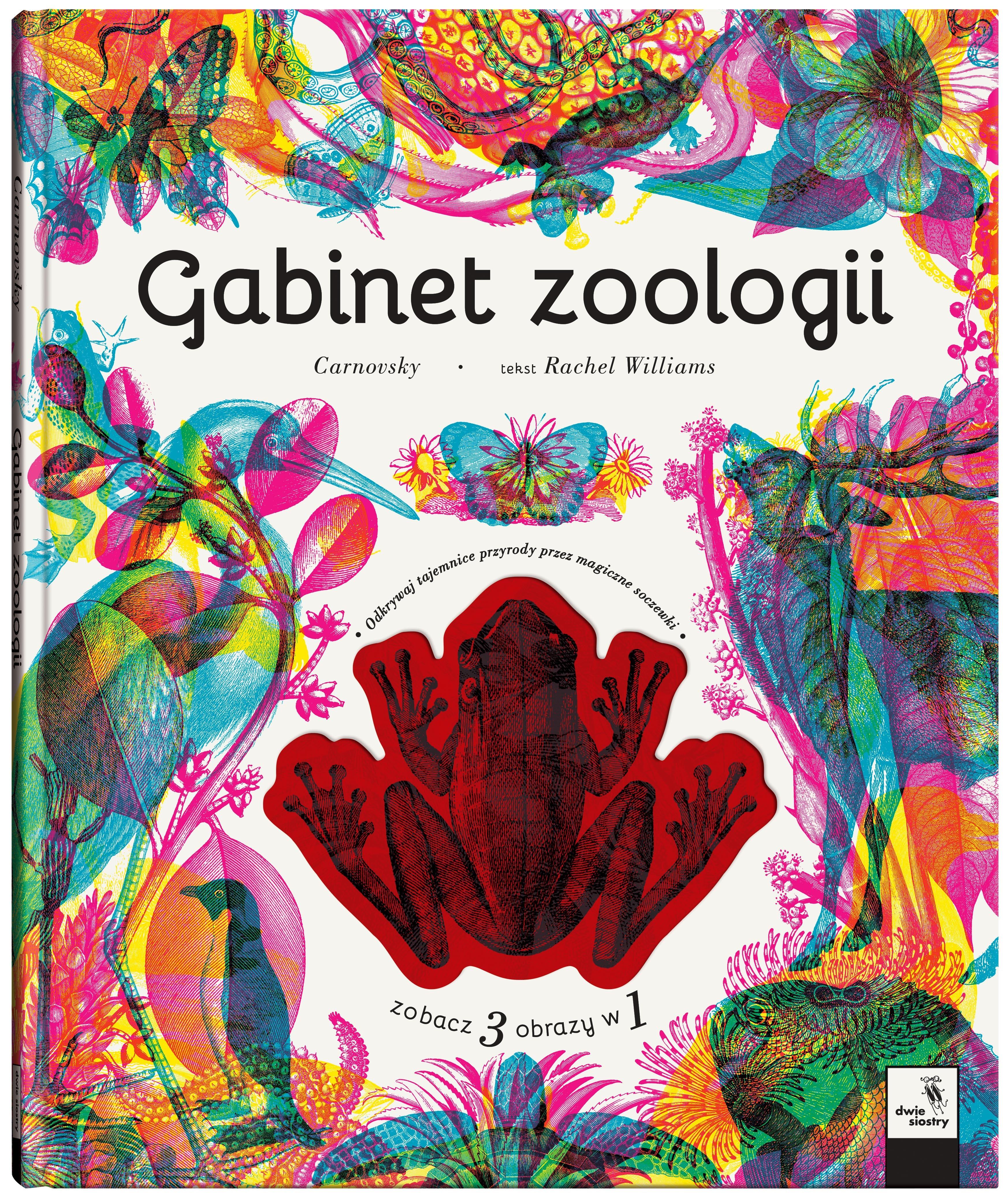 Efektowny album o zwierzętach dziennych i nocnych w dziesięciu fascynujących miejscach na Ziemi. Spójrz przez kolorowe soczewki, aby odkryć ich sekrety! Przyroda nigdy nie śpi! Kto budzi się o zmroku, a kto o świcie? Kto ma superczuły węch, a kto widzi w ciemnościach? Poznaj zwierzęta aktywne o różnych porach dnia i nocy i ich niezwykłe sposoby na przetrwanie w różnych środowiskach. Kongijski las deszczowy, równina Serengeti, syberyjska tajga, dorzecze Gangesu i inne siedliska odsłonią przed tobą swoje tajemnice dzięki niezwykłym ilustracjom. Każda z nich skrywa trzy warstwy. Przez czerwony filtr zobaczysz zwierzęta, które prowadzą dzienny tryb życia, zielony ukaże świat roślinności, a niebieski pozwoli odkryć tajemnicze stworzenia aktywne nocą oraz o świcie i zmierzchu. Książka składa się z dziesięciu rozdziałów prezentujących poszczególne ekosystemy. W każdym znajduje się opis danego środowiska, czarno-biały przewodnik po występujących w nim gatunkach zwierząt oraz duże barwne ilustracje do oglądania przez kolorowe filtry (lub przez telefon komórkowy – za pomocą strony rgb-lens.carnowsky.com ). Gabinet zoologii to fascynująca wyprawa przez różne kontynenty oraz mnóstwo ciekawych wiadomości o strategiach zwierząt, które wybrały do życia światło dnia albo mroki nocy.