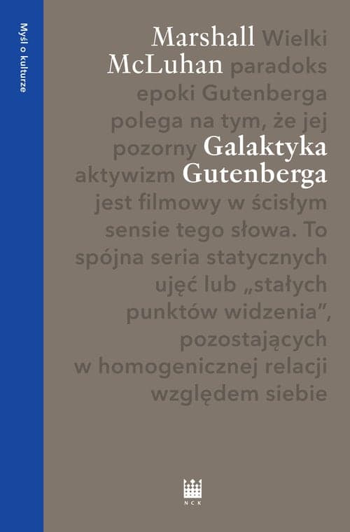 Galaktyka Gutenberga należy do kanonu tych książek, które powinien znać każdy, kto interesuje się wzajemnymi związkami kultury, społeczeństwa i mediów. Pozycja plasująca się na pograniczu kilku dziedzin,m.in. socjologii, kulturoznawstwa, językoznawstwa, teorii sztuki, antropologii i historii, stanowi doskonały wstęp do koncepcji Marshalla McLuhana, który nie bez powodu nazywany jest jednym z największych myślicieli drugiej połowy minionego wieku.
