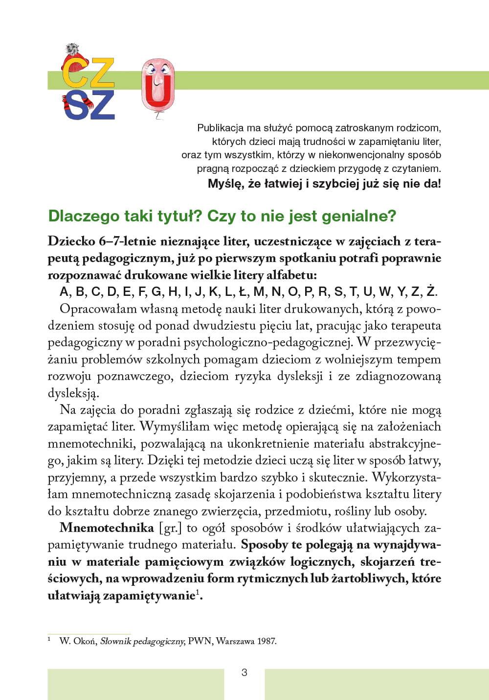 Prezentowana metoda opiera się ona na założeniach mnemotechniki i pozwala na ukonkretnienie materiału abstrakcyjnego, jakim są litery.