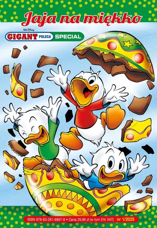 Nadchodzi wesoła wiosna w Kaczogrodzie! Historie, gdzie każde jajko okazuje się niespodzianką, a kaczki są oczywiście mądrzejsze od kury... "Gigant Poleca” to największa seria komiksowa, jaka ukazała się w Polsce – wszystkie wydane historyjki liczą ponad 60 tysięcy stron! „Gigant Poleca” bawi polskich czytelników już od 1992 r., kiedy był wydawany jako „Komiks Gigant”.