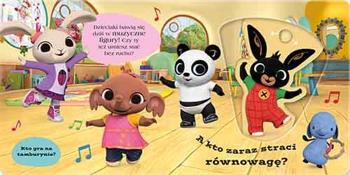 Wspólna zabawa… to wielka rzecz! Dołącz do Binga i jego przyjaciół, którzy spędzają czas w przedszkolu. Odkryj ruchome elementy tej książki i baw się dobrze wraz z poruszającymi się postaciami. Bing gra w chowanego z Pando, zobacz, gdzie się ukryli. Pomóż Suli namalować tęczę i przekonaj się, kto straci równowagę podczas zabawy w muzyczne posągi. Ta książka to wspaniały pomysł na dobre rozpoczęcie każdego dnia i niezawodny sposób na zajęcie kilkulatka podczas podróży, w kolejce na poczcie albo w supermarkecie! Dzięki innowacyjnym ruchomym elementom mały czytelnik może w aktywny sposób dołączyć do zabawy z Bingiem i jego przyjaciółmi. Oprócz ćwiczeń z zakresu motoryki małej, dodatkową atrakcję stanowią zadania na spostrzegawczość. Książka jest doskonała do ćwiczenia małych paluszków i rozbudzania dziecięcej ciekawości świata. Kartonowe, gładkie strony są wytrzymałe i odporne na zabrudzenia. Solidne wykonanie pozwoli maluchom dłużej cieszyć się zmieniającymi się elementami. Wszyscy miłośnicy Binga pokochają tę książkę pełną interaktywnej zabawy. W ofercie Wydawnictwa HarperCollins dostępne są również inne tytuły z Bingiem i jego przyjaciółmi.Szczegółowe informacje na temat książki Gotowi do zabawy? Bing Ruchome obrazki
