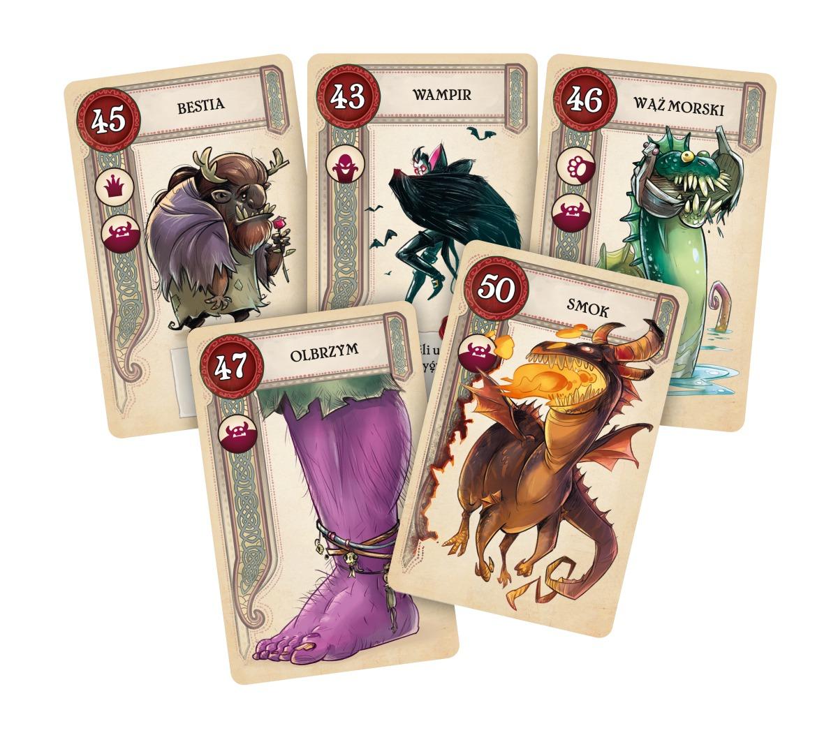 Każda z kart przedstawia inną baśniową postać o określonej wartości i cechach.