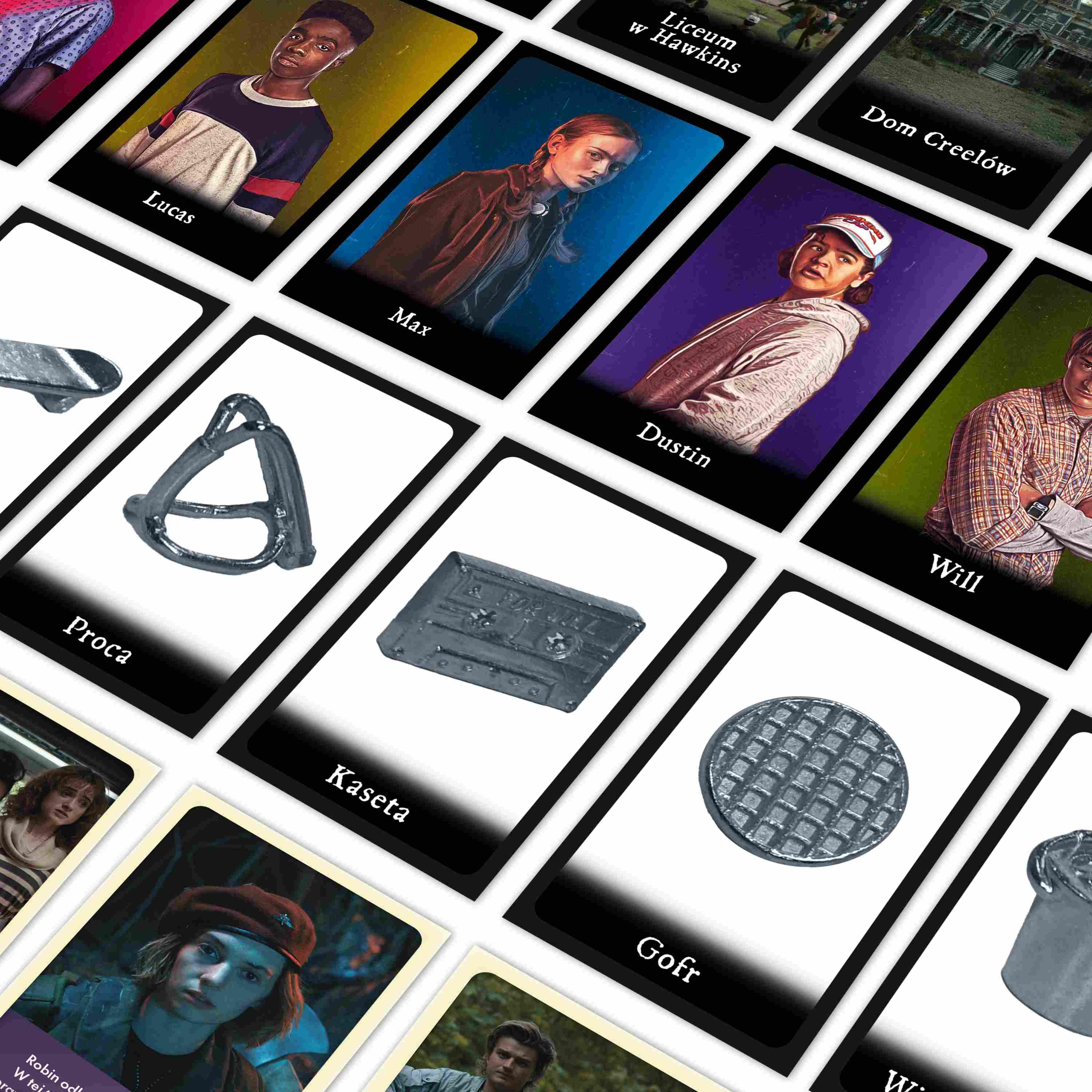 (Will, Mike, Lucas, Dustin, Max, Eleven), 6 metalowych przedmiotów (m.in. latarka, radio, sekator, proca, deskorolka, łańcuch),