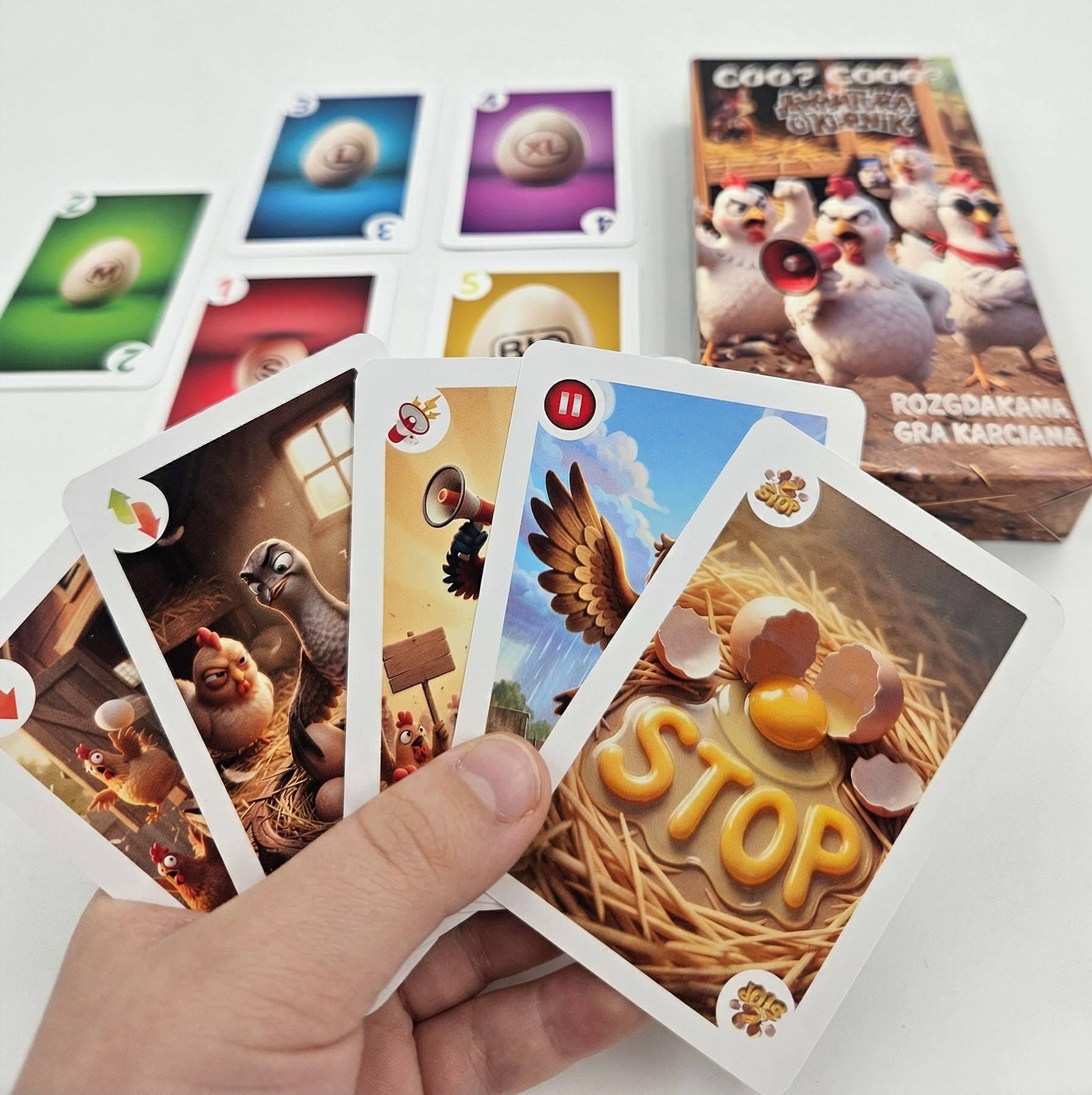 Awantura o kurnik to dynamiczna gra karciana, która wciąga od pierwszej rundy i błyskawicznie zamienia rodzinne spotkanie w pełną śmiechu i emocji rozgrywkę.
