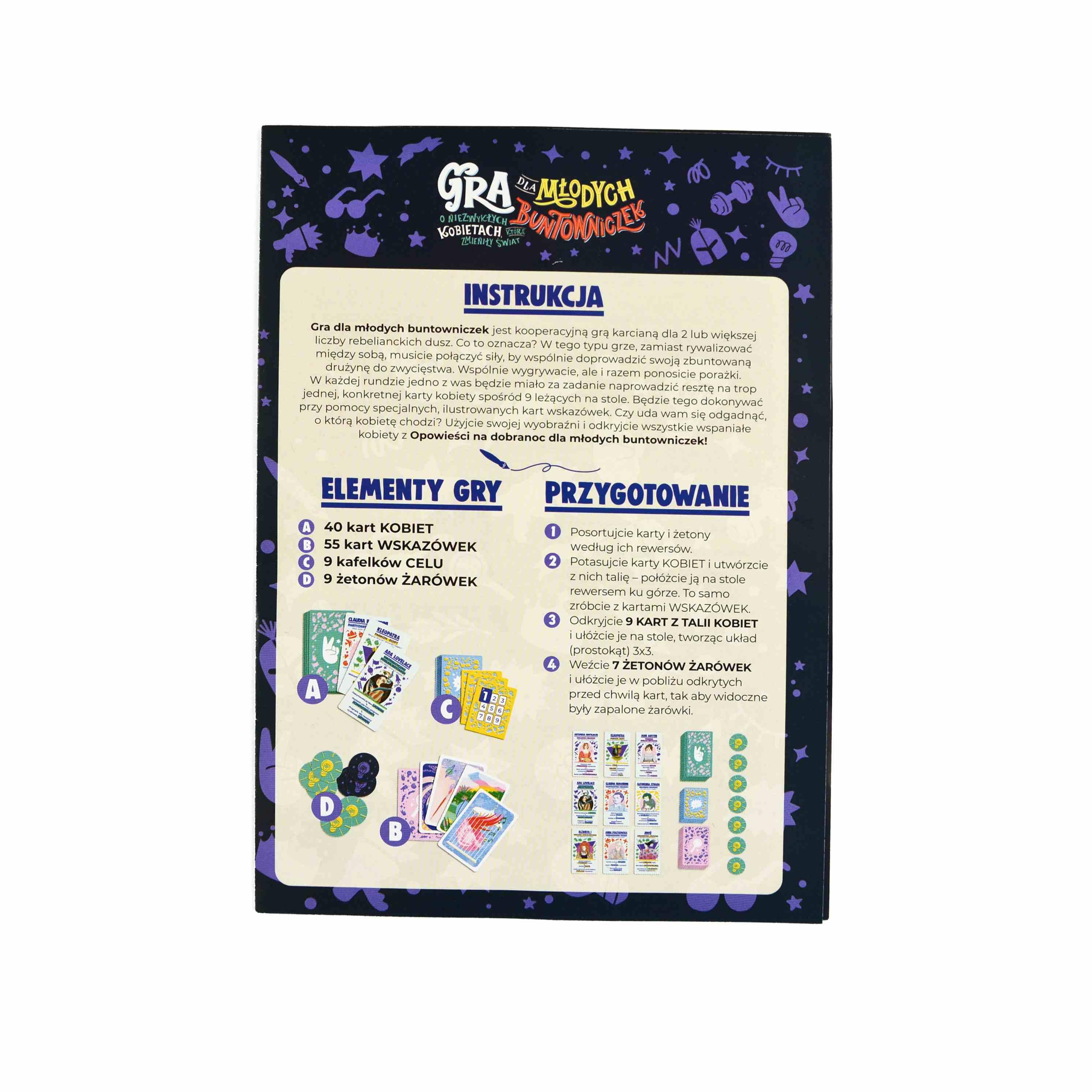 Gra dla młodych buntowniczek jest kooperacyjną grą karcianą dla 2 lub większej liczby rebelianckich dusz.