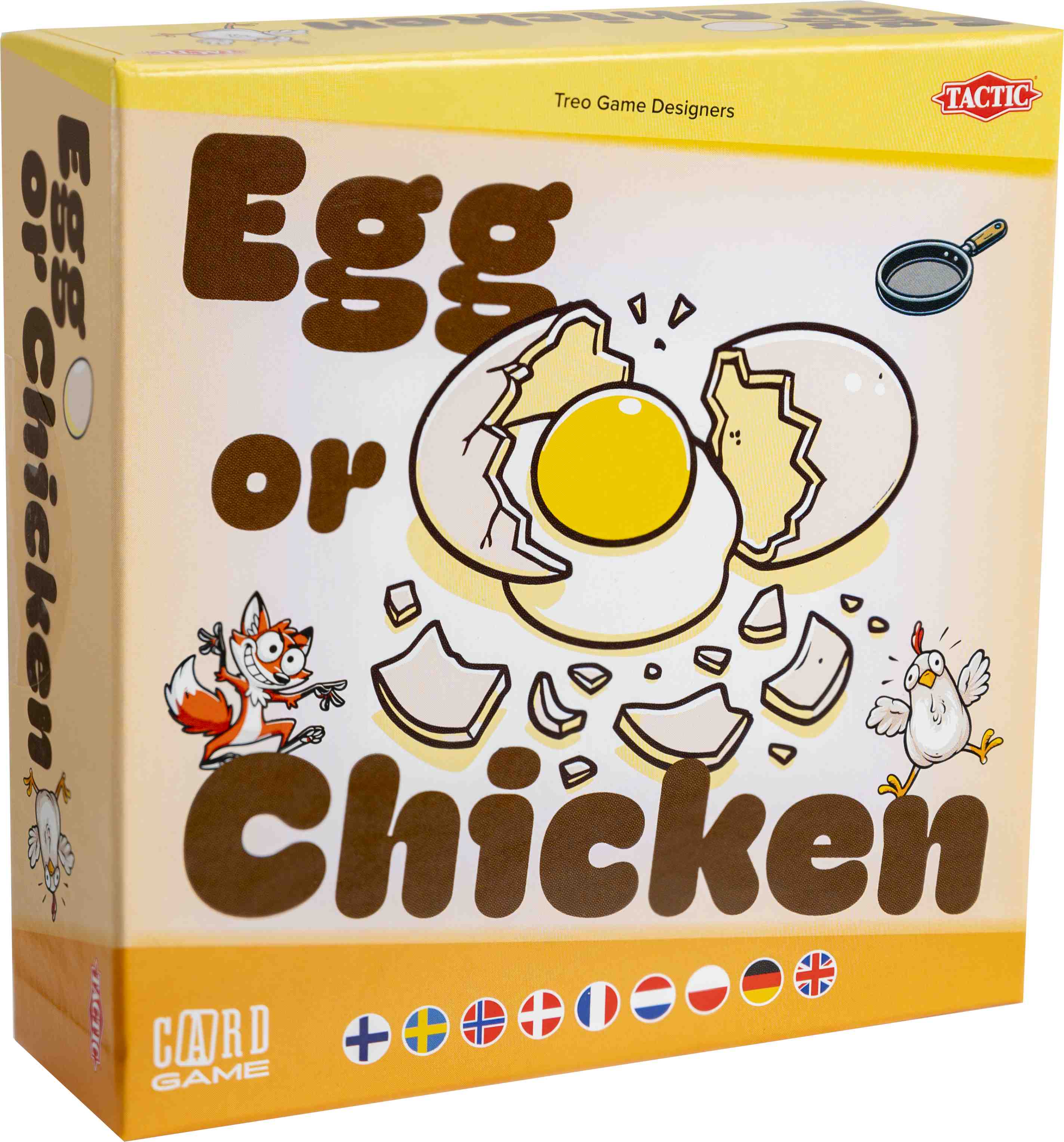 Egg or Chicken to szybka i zwariowana karciana gra licytacyjna z kurczakami, jajkami, lisami i patelniami, w której gracze obstawiają, ile, co najmniej, jajek lub kurczaków pojawi się na kartach w danej rundzie. Myślisz, że jest więcej jajek? A może kurczaków?