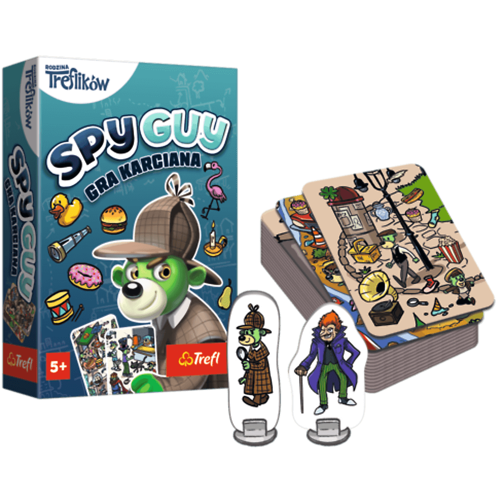 Gra karciana Spy Guy - obserwacycjna gra dla całej rodziny tym razem w odsłonie kieszonkowej. Doktor Moritz po raz kolejny próbuje uciec! Wciel się postać superdetektywa Spy Guy'a i złap złoczyńcę, zanim urwie się po nim trop. Sprawdź swoją spostrzegawczość i szukaj poszlak, które łączą ze sobą dwie karty. Im więcej serii poszlak odszukasz, tym większa szansa, że dogonisz uciekiniera.