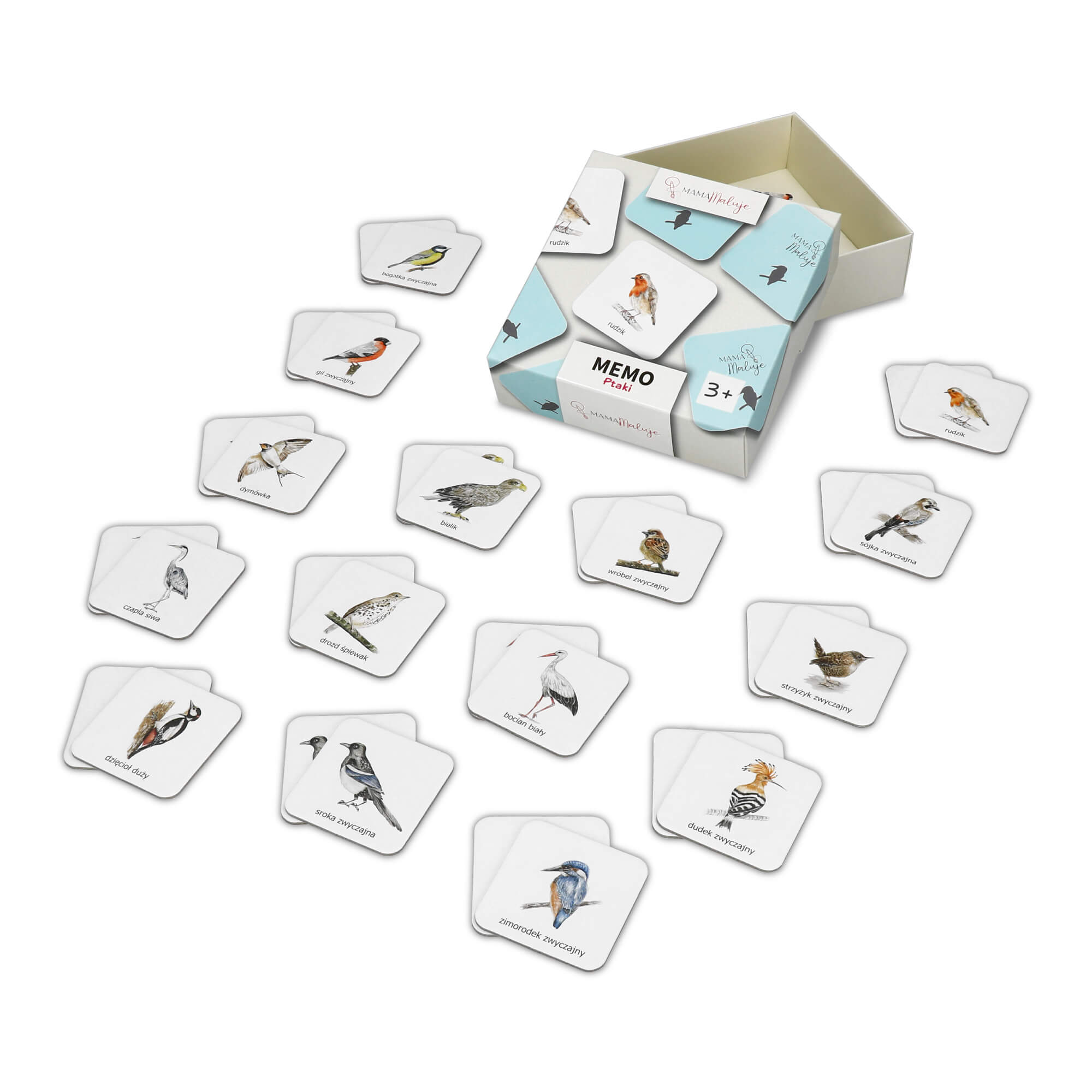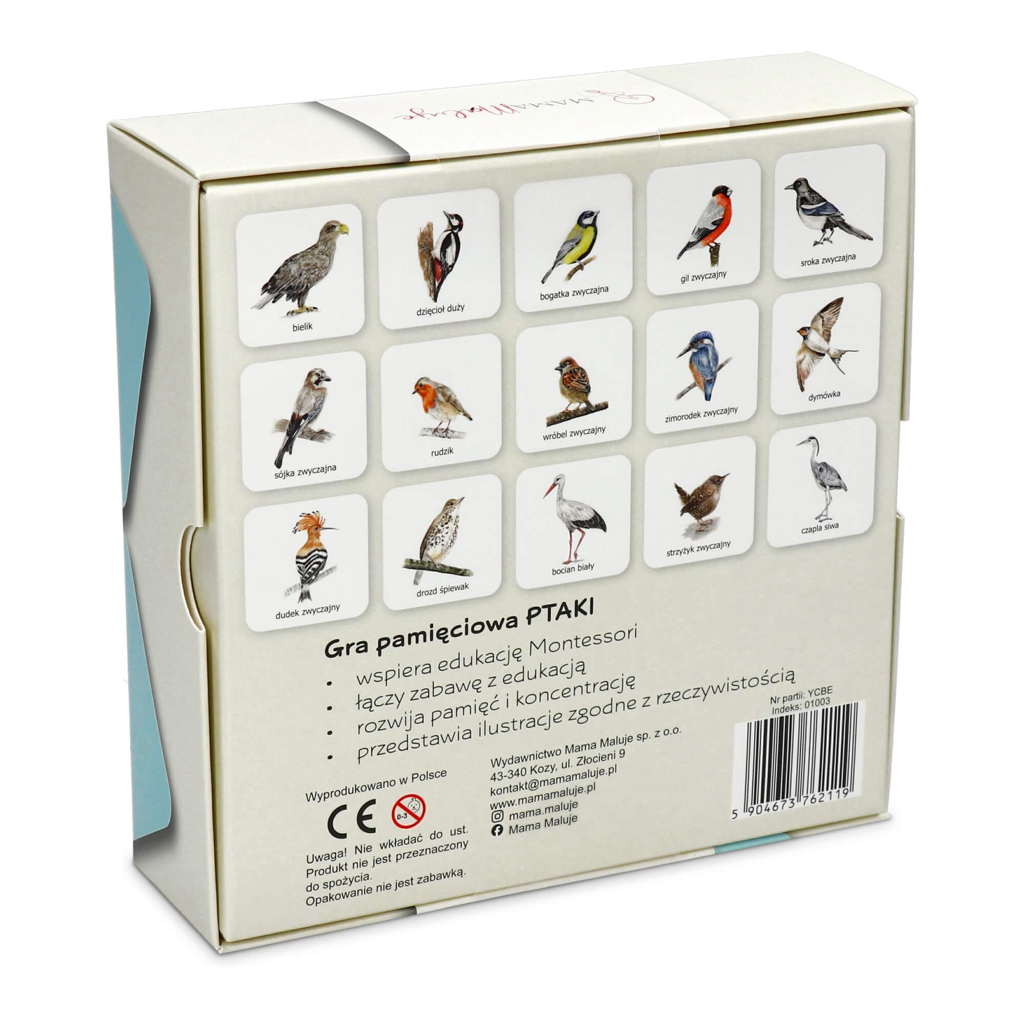Gra pamięciowa Memo Ptaki zawiera 30 elementów (15 par).