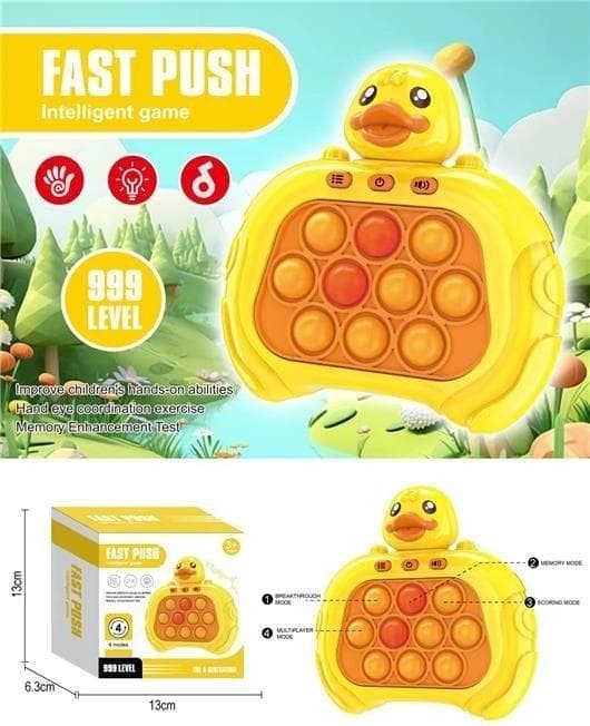Przenieś zabawę swojego dziecka na zupełnie nowy poziom dzięki innowacyjnej grze zręcznościowej Fast Push w kształcie sympatycznej kaczuszki. To urządzenie to znacznie więcej niż zwykły gadżet - to prawdziwe centrum treningowe dla młodego umysłu, które wciąga od pierwszego kliknięcia. Gra polega na błyskawicznym wciskaniu podświetlonych bąbelków, co w naturalny sposób stymuluje koordynację wzrokowo-ruchową oraz rozwija zdolności manualne. Dzięki czterem zróżnicowanym trybom rozgrywki, każde dziecko znajdzie wyzwanie dopasowane do swoich aktualnych umiejętności.
