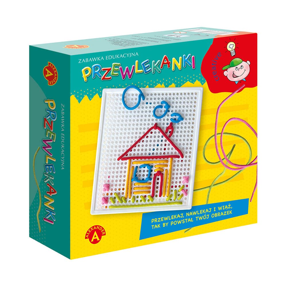 To zabawka, która polega na przewlekaniu kolorowych linek przez ażurową planszę. Linki należy przewlekać w taki sposób, by udało się stworzyć ciekawy obrazek. Zabawa rozwijająca kreatywność, ćwiczy cierpliwość i zręczność rąk.