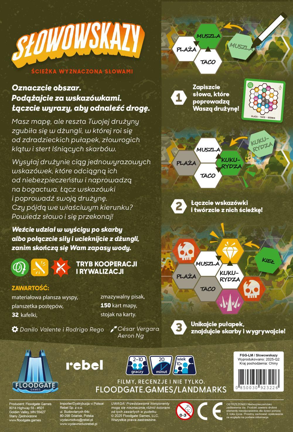 Słowowskazy to gra skojarzeniowa, w której jedna osoba prowadzi pozostałych przez dżunglę podając jednowyrazowe wskazówki. Odpowiednie rozlokowanie słów i sprytne łączenie ich w grupy pozwoli skierować drużynę w odpowiednią stronę, kolejne wskazówki będą bowiem nawiązywały do poprzednich.