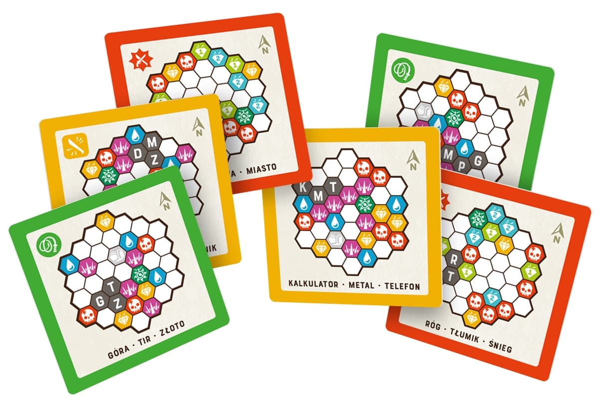 Każda z map ma własne słowa startowe. Przewodnik zapisuje je na kafelkach i umieszcza w odpowiednim miejscu planszy.