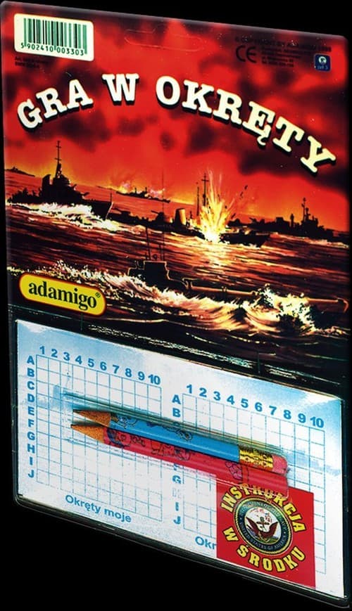 „Gra w okręty” to wyjątkowa gra logiczna znana ze szkolnej ławki. Celem gry jest zestrzelenie wszystkich okrętów przeciwnika. Zabawa, która rozwija zdolność przewidywania, myślenia, a jednocześnie ciekawa i emocjonująca rozrywka. Zestaw gry zawiera: - komplet kartoników, - ołówki dla 2 graczy, - instrukcję. Wiek 7+
