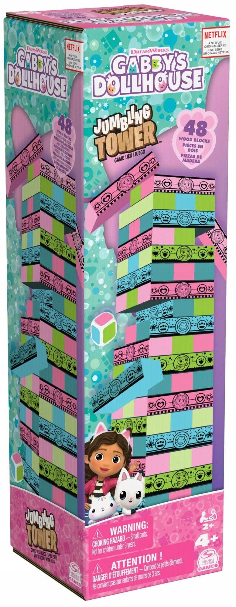 Zbuduj wieżę, ale uważaj, żeby nie jej nie przewrócić, bo to oznacza przegraną w tej grze dla dzieci Koci Domek Gabi Wieża od Spin Master Games. Cel gry jest prosty - nie dopuścić do przewrócenia wieży.