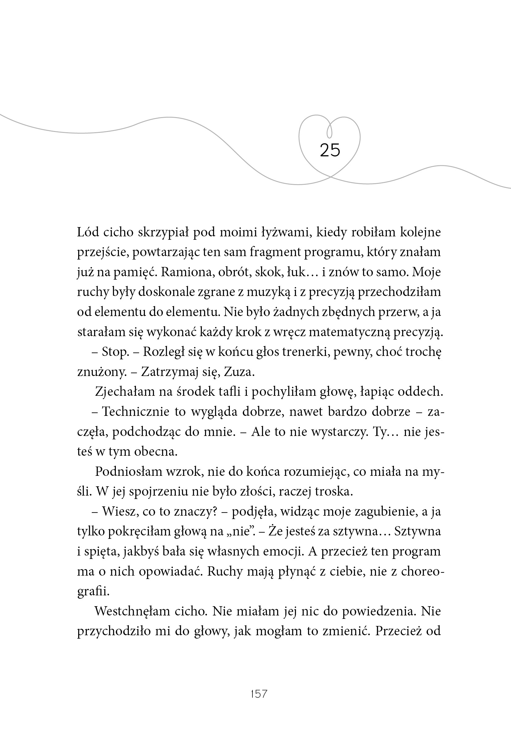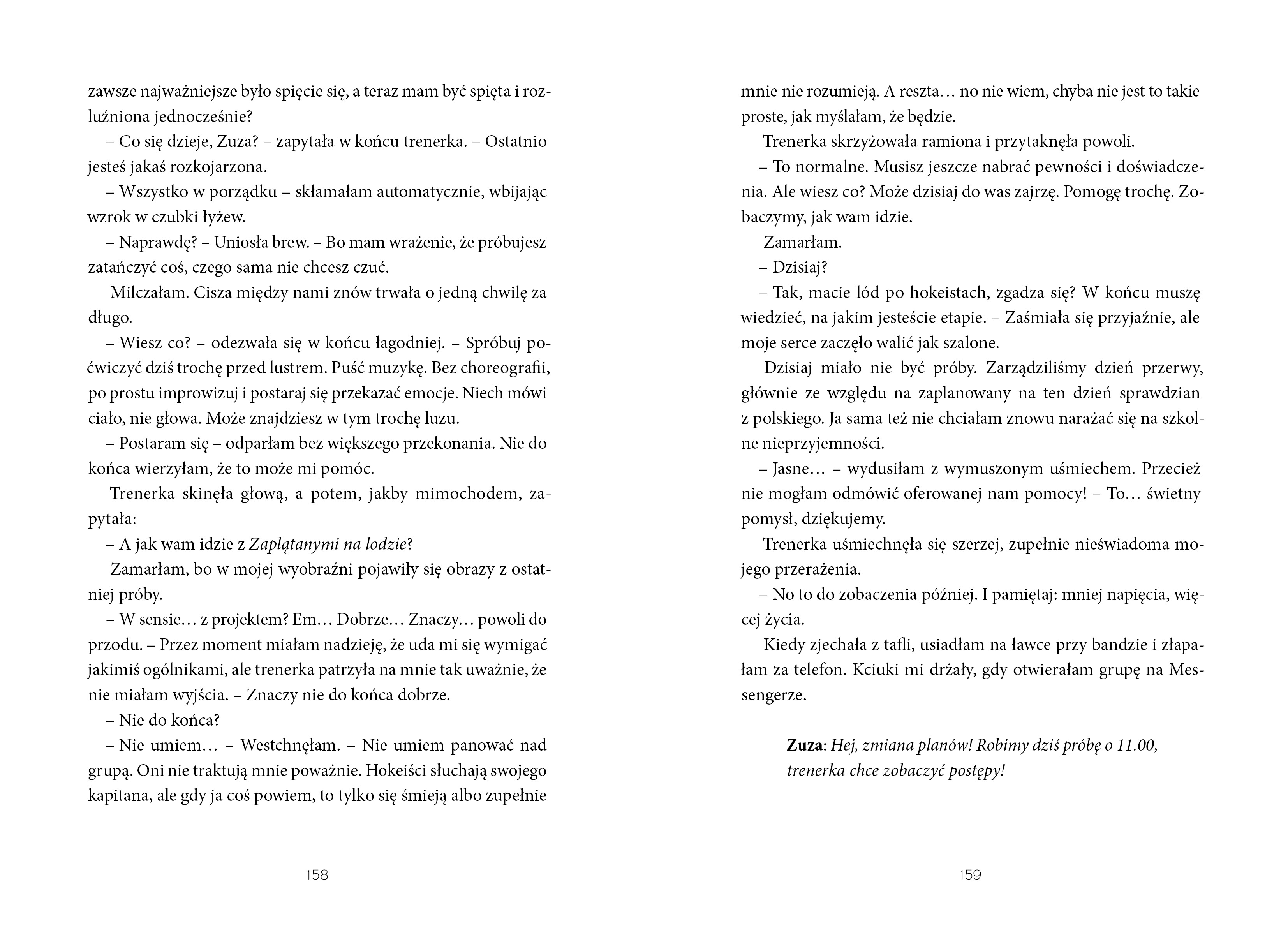 Na lodzie nie ma miejsca na prawdziwą przyjaźń. Ale czy jest miejsce na prawdziwą miłość?Zuza niczego nie kocha tak mocno jak łyżwiarstwa. Ma jasny cel: zabłysnąć w kwalifikacjach jako nowa zawodniczka i pokazać wszystkim – a zwłaszcza swojej mamie – że pasja znaczy więcej niż oceny. Rywalizacja na lodowisku bywa brutalna i wcale nie kończy się po zejściu z tafli. Szczególnie że Zuza coraz więcej czasu spędza z Filipem – łyżwiarzem, o którym marzy każda dziewczyna z jej grupy.