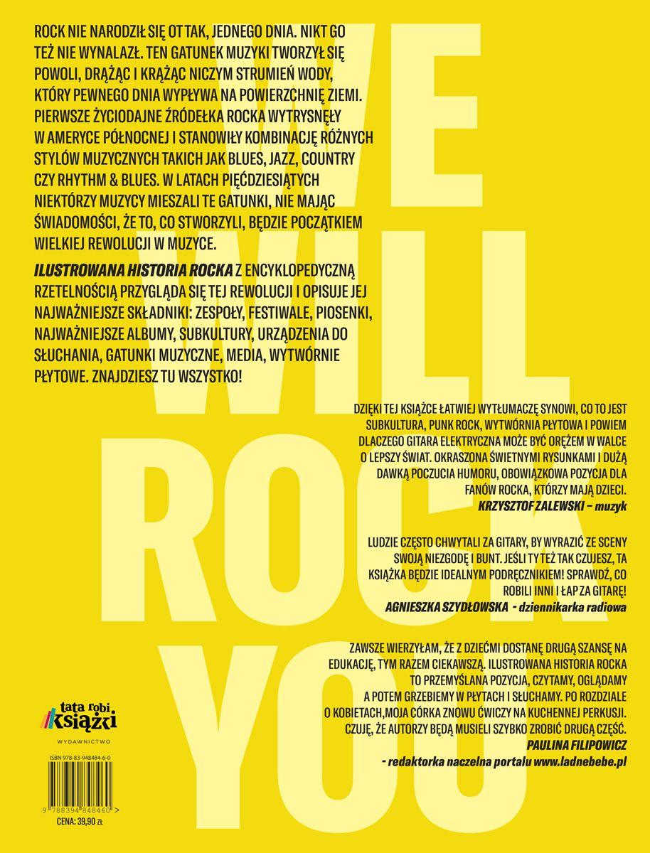 "Zawsze wierzyłam, że z dziećmi dostanę drugą szansę na edukację, tym razem ciekawszą. Ilustrowana Historia Rocka to przemyślana pozycja; czytamy, oglądamy, a potem grzebiemy w płytach i słuchamy. Po rozdziale o kobietach, moja córka znowu ćwiczy na kuchennej perkusji, czuję, że autorzy szybko będą robili kolejną część." - Paulina Filipowicz – redaktorka naczelna portalu www.ladnebebe.pl