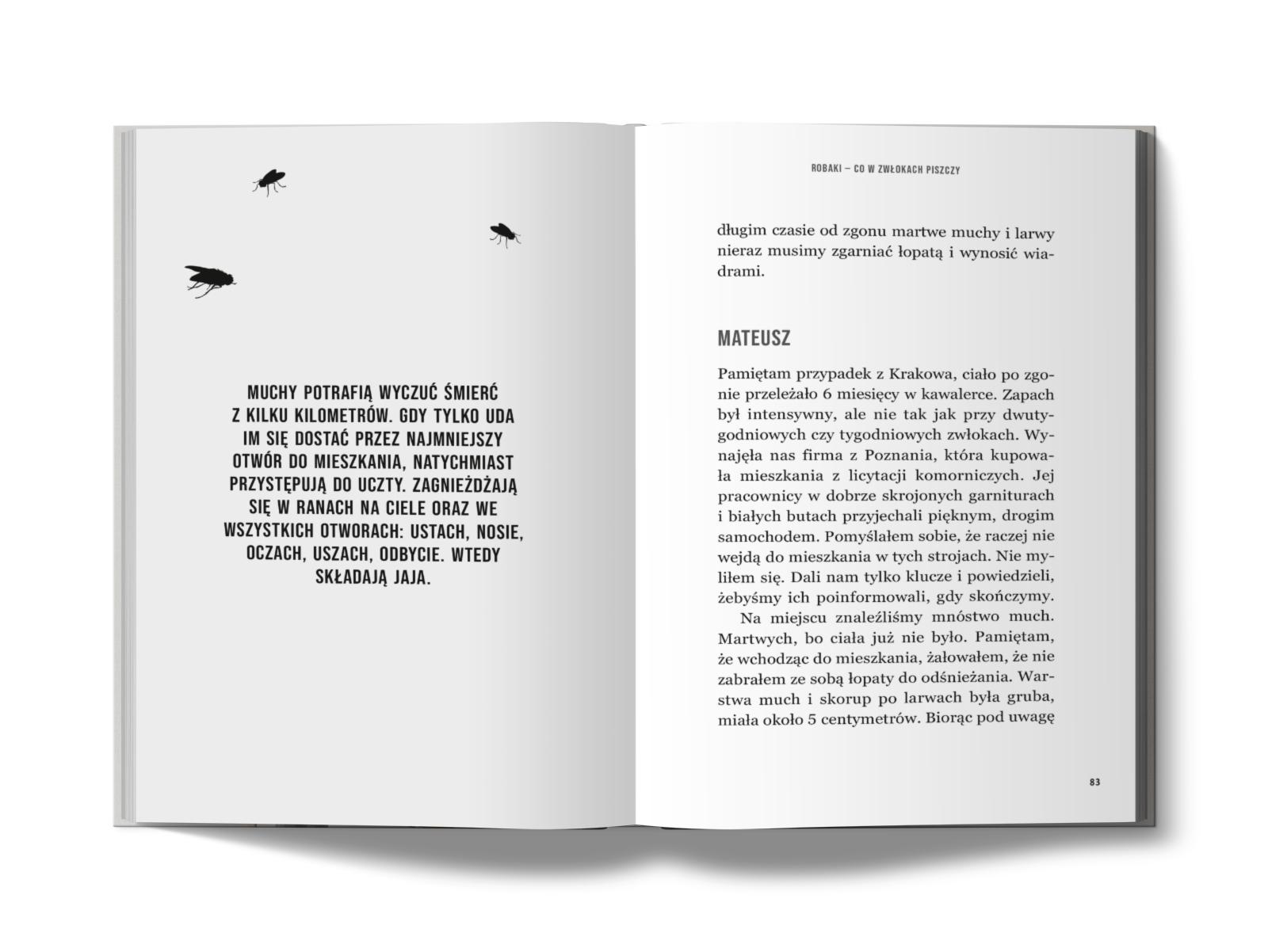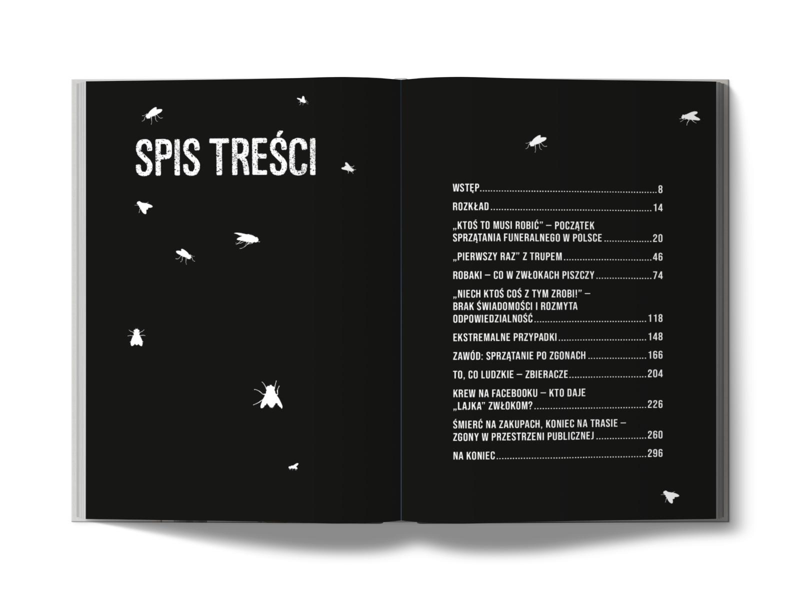 Mateusz Węgorowski jest założycielem jednej z pierwszych firm na polskim rynku, która zajmuje się sprzątaniem funeralnym. Ta książka to zbiór prawdziwych opowieści zza kulis zawodu, o którym wciąż niewiele wiemy. Są w niej opisy trudnych, niemal surrealistycznych sytuacji, takich jak sprzątanie zębów wbitych w ścianę po wybuchu granatu, ale też refleksje i spostrzeżenia dotyczące ostatnich chwil wielu Polaków.
