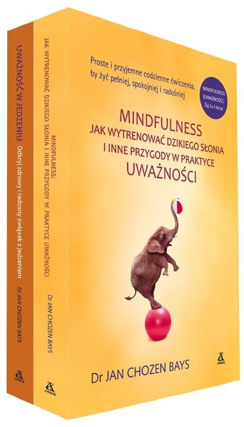 Znana nauczycielka buddyzmu zen i lekarka pokazuje, co robić, by wprowadzić uważność (mindfulness) do codzienności Jak wytrenować dzikiego słonia Proste i przyjemne codzienne ćwiczenia, by żyć pełniej, spokojniej i radośniej Jan Chozen Bays przygotowała zestaw prostych ćwiczeń, by pomóc rozwijać uważność podczas zwyczajnych, codziennych zajęć. Wystarczy inaczej do nich podejść. Na przykład: wziąć trzy głębokie oddechy przed odebraniem telefonu, w ciągu dnia korygować postawę ciała, jeść uważnie, zamiast tylko jeść... Każde ćwiczenie uzupełniają cenne wskazówki, jak o nim codziennie pamiętać. „Znakomity zbiór prostych, a jednocześnie inspirujących i cennych ćwiczeń uważności. To bardzo pożyteczna lektura dla każdego, kto chce przeżyć swoje życie w całej jego dostępnej pełni”. Marek Jaros, Prezes Kliniki Stresu w Warszawie Uważność w jedzeniu Odkryj zdrowy i radosny związek z jedzeniem! Na podstawie najnowszych badań naukowych i własnej praktyki Jan Chozen Bays pokazuje, jak uważność może zmienić nasz stosunek do jedzenia, jego rolę w naszym życiu oraz pomóc rozwiązać wiele problemów dotyczących nie tylko jedzenia. Uważność w jedzeniu to sztuka pełnego skupienia się na smakach, zapachach, formach, myślach i uczuciach, które towarzyszą posiłkowi. Wtedy można odkryć, że jedzenie to wielka przyjemność. Niezależnie od tego, czy masz nadwagę, cierpisz na zaburzenia układu pokarmowego czy chcesz po prostu czerpać więcej radości z życia, ta książka ci pomoże.
