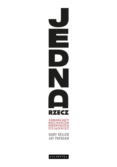 Chcesz więcej! Więcej pieniędzy, czasu i satysfakcji z życia. A zarazem chcesz mniej! Mniej pracy, obowiązków i stresu. Autorzy z list bestsellerów „New York Timesa” – Gary Keller i Jay Papasan – uczą, w jaki sposób koncepcja JEDNEJ rzeczy może całkowicie zmienić podejście do każdej dziedziny życia, wpłynąć na dokonywane wybory i odnoszone rezultaty. Czasami twoja JEDNA rzecz będzie pierwszą rzeczą na liście. Czasami – jedyną. Ale zawsze to właśnie ona przyniesie niezwykłe efekty. Jaka jest twoja JEDNA rzecz? W obliczu niepewności, nieprzewidywalności i turbulencji współczesnego świata najtęższe głowy sięgają w życiu i w biznesie po modele oraz strategie, które łączą całościowe i procesowe podejście do rzeczywistości (complexity) z poszukiwaniem prostych i trafnych rozwiązań złożonych problemów (simplicity). W ten sposób rozwija się nowa filozofia, język szkoły życia (simplexity), do której należy ta książka. Jest po prostu świetna. Wprowadzamy ją na listę lektur Akademii Psychologii Przywództwa Szkoły Biznesu Politechniki Warszawskiej i Values. Jacek Santorski, konsultant, dyrektor Akademii i co-chairman Values (www.values.pl)