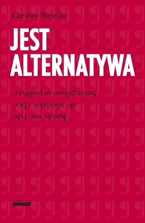Jest alternatywa Czesława Bieleckiego to znakomita, wartko napisana publicystyka polityczna; realistyczne i krytyczne podsumowanie 25 lat polskiej transformacji. Motto książki brzmi: Każdy wie tyle, ile wiedzieć chce. Szczególnie w polityce W 1989 roku udało nam się zrobić rzecz dla innych narodów niewyobrażalną. Dokonaliśmy tego, co innym narodom – także naszym sąsiadom, w tym Niemcom i Rosji – wydawało się niemożliwe. Jest alternatywa jest książką o rzeczach już jak najbardziej możliwych, których nie zrobiliśmy przez następne 25 lat po upadku komunizmu. Rzeczach, bez których nasza wolność i nasza niepodległość są wciąż kruche. Zdaniem autora polska administracja publiczna, sądownictwo, obrona narodowa nie gwarantują nam miejsca w Europie, do jakiego aspirujemy. - Ani to Zachód, ani Wschód, jakbyś stanął w drzwiach – pisał o takiej sytuacji jeden z publicystów Drugiej Rzeczpospolitej. Nasza Trzecia trwa już dłużej niż Druga, choć nie zrealizowała żadnego projektu na miarę Gdyni czy COP-u. Czesław Bielecki przedstawia swoje diagnozy i formułuje wybory, przed którymi stoimy. Pokazuje sploty problemów i fałszywe alternatywy, wszystko to, czego polska klasa polityczna nie ma odwagi rozstrzygnąć. Pokazuje jak, zachowując tożsamość, przezwyciężyć naszą mentalność. To ona prowadzi do notorycznego marnowania kapitału ludzkiego i intelektualnego, a w konsekwencji – przegrywania zwycięstw. Autor jest wierny swemu mottu: Każdy wie tyle, ile wiedzieć chce. Szczególnie w polityce. Czesław Bielecki jest absolwentem Wydziału Architektury Politechniki Warszawskiej i drem nauk technicznych, jako architekt pracował i odbywał staże zawodowe we Francji, Izraelu i RFN, od 1984 r. prowadzi założoną przez siebie firmę architektoniczną „Dom i Miasto”, w 1968 r. brał udział w wydarzeniach marcowych, w 1979 r. rozpoczął współpracę z paryską „Kulturą”, od 1980 r. należał do NSZZ „Solidarność”, w stanie wojennym zaangażował się w działalność wydawnictw podziemnych, był aresztowany i więziony, po 1989 r. był posłem na sejm.