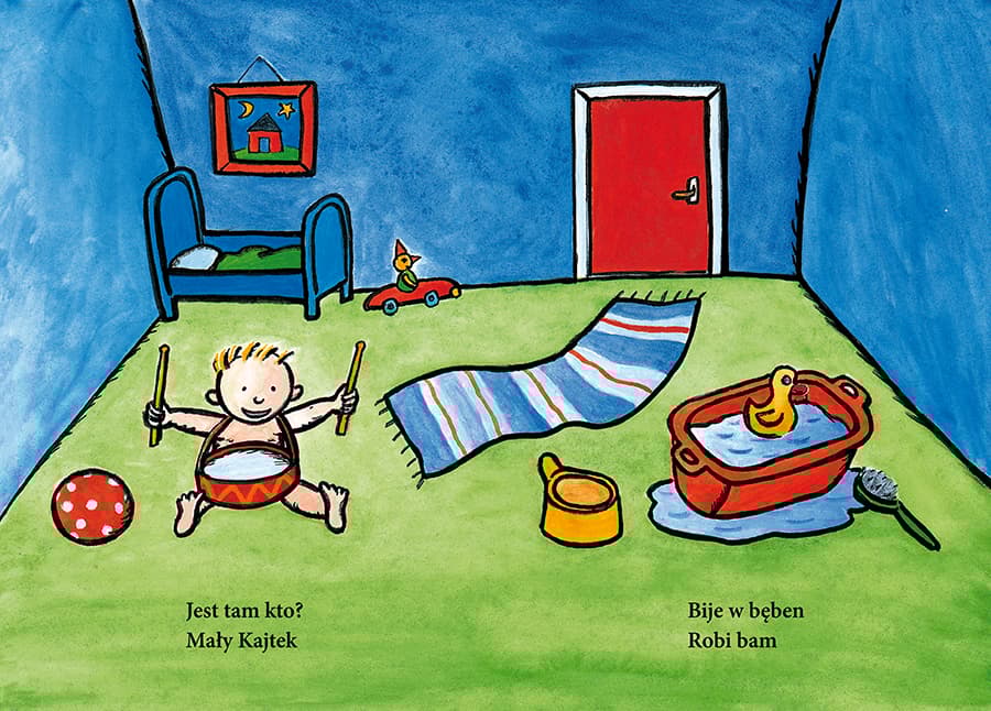 Co kryje się za białymi, niebieskimi i żółtymi drzwiami? Aby się przekonać, trzeba koniecznie w nie zapukać! Puk, puk, puk! Jest tam kto? Rytmicznie powtarzające się obrazy i słowa prowadzą malucha za kolejne drzwi, a za drzwiami – zawsze coś ciekawego – małe misie, chrupiące zające czy małpia bitwa na poduchy. Przejrzyste kolory i formy idealne dla najmłodszych czytelników. Książeczka inspirująca do zabawy. Szwedzki bestseller dla jedno-, dwulatków. Polecamy również: "Gdzie idziemy?".Szczegółowe informacje na temat książki Jest tam kto?