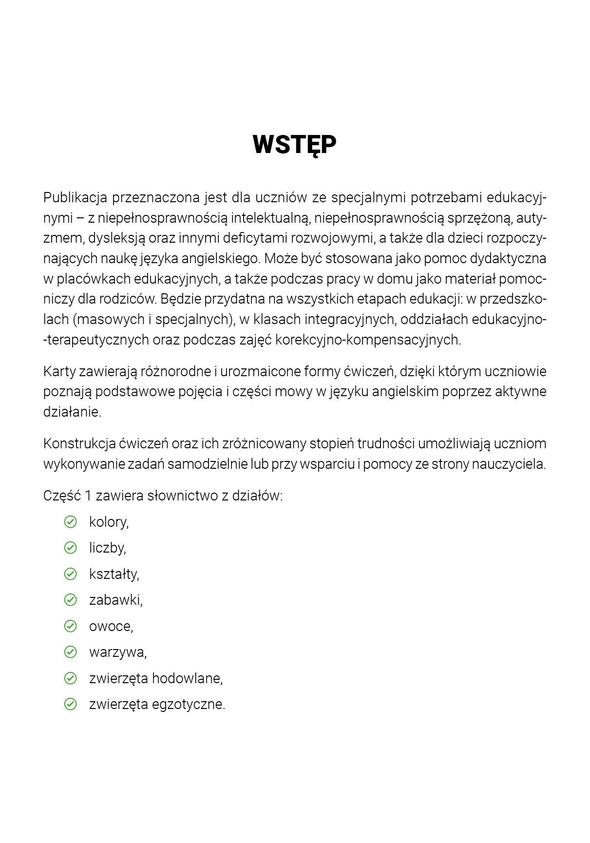 Szczegółowe informacje na temat książki Język angielski Karty pracy dla uczniów ze specjalnymi potrzebami edukacyjnymi Część 1