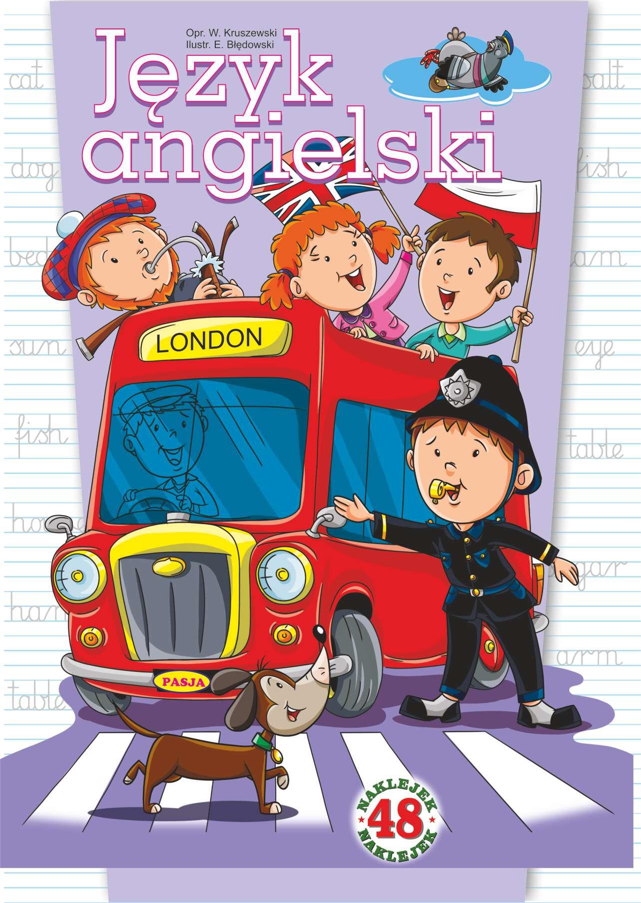Kolorowanka edukacyjna do nauki języka angielskiego dla najmłodszych, z naklejkami.