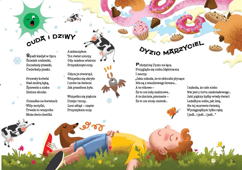 Kultowe wiersze mistrza Tuwima od pokoleń bawią dzieci i dorosłych. W tym zbiorze czekają na was niezwykłe przygody PANA MALUŚKIEWICZA, który w łupince orzecha przemierzył ocean, wiadomości z PTASIEGO RADIA oraz zabawne perypetie SŁONIA TRĄBALSKIEGO. W tej książce spotkacie ZOSIĘ SAMOSIĘ, DYZIA MARZYCIELA i rodzinę TRALALIŃSKICH, wyruszycie w podniebną podróż AEROPLANEM i poznacie mądrą historię o RYBAKU I ZŁOTEJ RYBCE. Wiersze Juliana Tuwima to pełne rytmu, humoru i fantazji teksty idealne do wspólnego czytania, recytowania i radosnej zabawy słowem.
