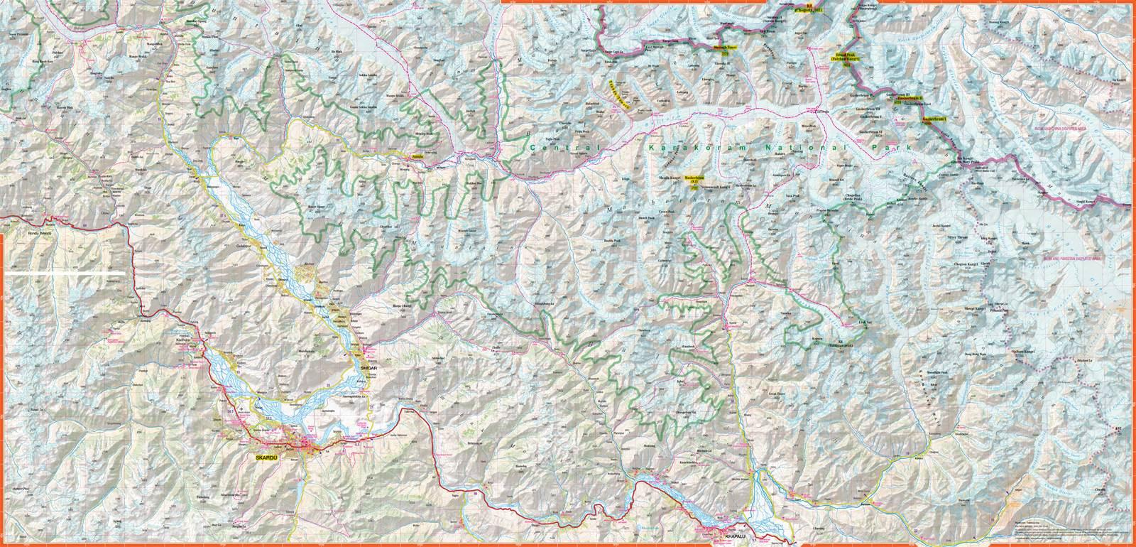 Doskonała i komfortowa w użytkowaniu mapa trekkingowa gór Karakorum w Pakistanie.