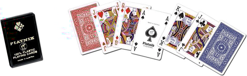 Najwyższej jakości, w 100% plastikowe, karty renomowanej firmy Ferd. Piatnik & Sohne. Czarne, tradycyjne pudełko zawiera talię 55 kart o wymiarach 58 x 89 mm. Wyroby wiedeńskiej fabryki Ferd. Piatnik & Sohne od 1824 roku urzekają bogactwem wzorów i perfekcją wykonania. Jakość i tradycja!