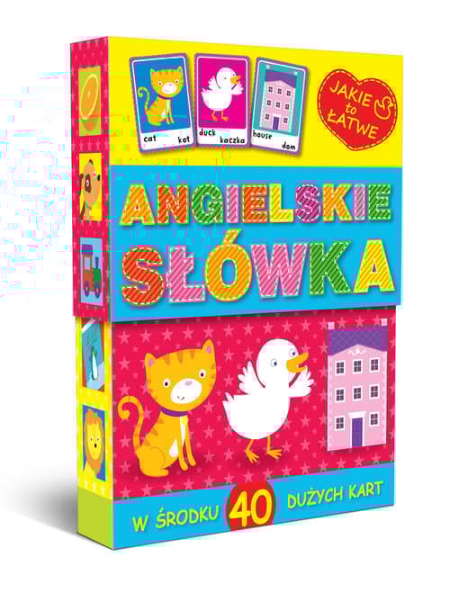 Karty, które zawsze można mieć ze sobą Karty edukacyjne dla młodszych dzieci, które pomagają w nauce liczenia, tabliczki mnożenia, poznawania liter oraz pierwszych angielskich słówek. W każdym pudełeczku znajduje się 40 obustronnych, kolorowych kart. Całość przewiązana jest sznureczkiem, dzięki któremu karty można mieć zawsze ze sobą. Doskonała pomoc edukacyjna dla rodziców, opiekunów i nauczycieli.