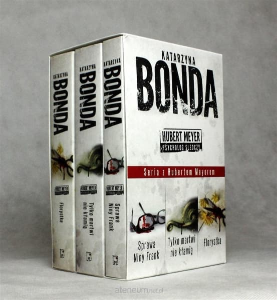 Katarzyna Bonda - polska pisarka i dokumentalistka, dziennikarka oraz scenarzystka zajmująca się tematyką kryminalną. Sprawa Niny Frank - Najpopularniejsza aktorka polskich seriali, Nina Frank, zostaje znaleziona martwa w swoim dworku w sielskiej przygranicznej miejscowości Mielnik nad Bugiem. Uwielbianej celebrytce, o czym wiedzą nieliczni, daleko do granej przez nią postaci szczęśliwej i dobrej zakonnicy Joanny. Jednak to właśnie ta rola przyniosła jej pieniądze i sławę. Prawdę o pełnym skandali życiu aktorki, o dwuznacznej drodze do kariery, licznych kochankach i nałogach odkryje psycholog policyjny, Hubert Meyer, który przybywa na miejsce zbrodni. Florystka - Hubert Meyer popełnił błąd w profilu i porzucił pracę w policji. Stary przyjaciel prosi go o pomoc w przesłuchaniu młodej kobiety, w związku z zaginięciem jej 9-letniej córki. Policjanci próbują łączyć tę sprawę z bestialskim zabójstwem 11-letniego Amadeusza, którego matka jest szanowaną w mieście florystką. Okazuje się, że była ona ostatnią osobą, która widziała Zosię żywą. Florystka początkowo pomaga w poszukiwaniach, ale gdy ciało dziecka odnajduje się na tym samym cmentarzu, gdzie pochowano Amadeusza, staje się główną podejrzaną. Tylko martwi nie kłamią - Profiler policyjny musi rozwikłać zagadkę śmierci śmieciowego barona, którego ciało znaleziono w jednej z katowickich kamienic. Wszystkie poszlaki wskazują na biznesowe porachunki, ale Hubert Meyer czuje, że sprawa może mieć związek z morderstwem sprzed 17 lat.