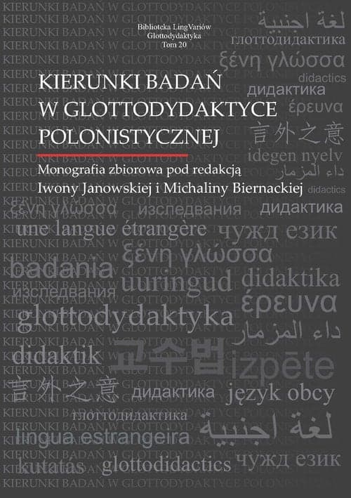 […] monografia naukowa Kierunki badań w glottodydaktyce polonistycznej pod red. Iwony Janowskiej i Michaliny Biernackiej stanowi bardzo cenną i wyjątkową pozycję, długo oczekiwaną na gruncie glottodydaktyki polonistycznej. Tworzy spójną i przemyślaną całość, opracowaną w sposób rzetelny i bardzo staranny. Chociaż omawiana pozycja ma charakter stricte naukowy, to zawiera wiele przydatnych wskazówek dydaktycznych, które – co jest nie do przecenienia – są silnie ugruntowane w badaniach empirycznych. z recenzji dr hab. Anny Żurek Zawartość tomu stanowią artykuły, których celem jest zwrócenie uwagi środowiska glottodydaktyków na indywidualne, charakterystyczne dla poszczególnych autorów i rzadko w literaturze przedmiotu prezentowane zainteresowania badawcze, wynikające z aktualnie dostrzeganych potrzeb rozwijającej się dyscypliny. Zgromadzone teksty pokazują, że współcześni dydaktycy języka polskiego jako obcego nie poprzestają na rozważaniach teoretycznych, a rozmaite poglądy weryfikują, korzystając przy tym m.in. z metod czy narzędzi uznawanych za typowe choćby dla nauk ścisłych (statystyczne, korpusowe, akustyczne itp.). Opracowane wnioski z badań, przedstawione w poszczególnych artykułach, pozwalają na nowo spojrzeć na proces przyswajania i (lub) nauczania/ uczenia się polszczyzny w takich aspektach jak np.: skuteczność stosowania nowych technologii, jakość i zasadność werbalnych i niewerbalnych działań praktycznych nauczycieli (czy nawet stosowanej przez nich naukowej terminologii), właściwy dobór materiałów dydaktycznych podyktowany potrzebami określonych adresatów bądź sposoby rozwijania kompetencji językowych w grupach hetero- i homogenicznych. Istotne z punktu widzenia wielu badaczy okazały się ujęcia lapsologiczne, opisom poddano również elementy systemu certyfikacji znajomości języka polskiego jako obcego. Ponadto analizy o charakterze jakościowym, ilościowym, a najczęściej mieszanym oraz dość rozbudowane korpusy służące eksperymentom pozwalają uznać opisywane rezultaty jako istotne dla rozwijającej się dyscypliny oraz – co szczególnie cenne – aplikatywne. Michalina Biernacka, Iwona Janowska, Wprowadzenie (fragment)