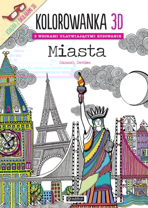 Kolorowanka 3D Miasta przeniesie wszystkich zainteresowanych kolorowaniem do trzeciego wymiaru. Postępuj zgodnie ze wskazówkami, by nauczyć się, w jaki sposób rozkładać ciepłe i zimne kolory, a uzyskasz zaskakujący efekt głębi. Bogate w szczegóły projekty przedstawiają dobrze znane obiekty, rozpoznawalne metropolie i rozległe pejzaże miejskie. Ta inspirująca i odprężająca książka, z miejscem na własne rysunki, przeznaczona jest zarówno dla dzieci, jak i dla dorosłych. Do książki dołączone są specjalne okulary 3D. Załóż je, aby zobaczyć, jak ciepłe kolory wysuwają się na pierwszy plan, a zimne wtapiają w tło. W serii również: Zwierzęta, Kwiaty