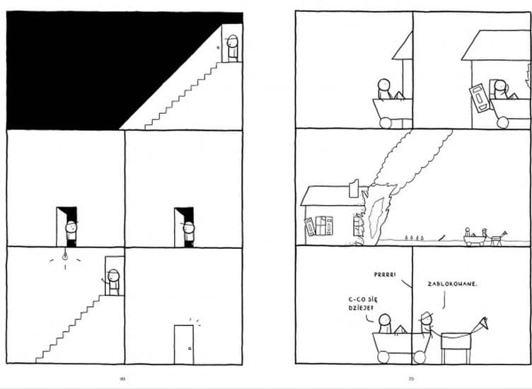 W pewnej małej podlaskiej wsi życie toczy się swoim rytmem. Brak prądu wydaje się być tylko chwilową awarią. Do momentu, w którym wraz z pierwszymi wieściami ze świata zewnętrznego do wioski przybywają niespodziewani goście... „Koniec świata w Makowicach”, najnowszy komiks Jana Mazura, autora m.in. „Tam, gdzie rosły mirabelki”, to słodko-gorzka historia o niezapowiedzianej wojnie, więzach rodzinnych, nieporadnej rewolucji i tym, co przypadkiem można znaleźć w lesie.