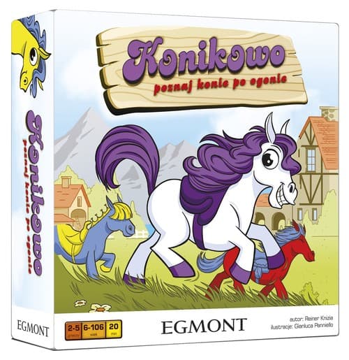 Na stole rozkładane są kolorowe koniki. Jeden z graczy rzuca kostkami. Kto pierwszy znajdzie konia w kolorach wskazanych przez kostki, zabiera go i kładzie przed sobą. Wygra gracz, który na koniec gry uzbiera najwięcej koników. Gra ma bardzo proste reguły i błyskawiczne tempo rozgrywki! Spodoba się zarówno 5-letnim dzieciom, jak i starszym graczom. Liczba graczy: 2 - 4 osoby Wiek: od 5 lat Czas gry: ok. 15 minut Waga: ok. 0.21 kg