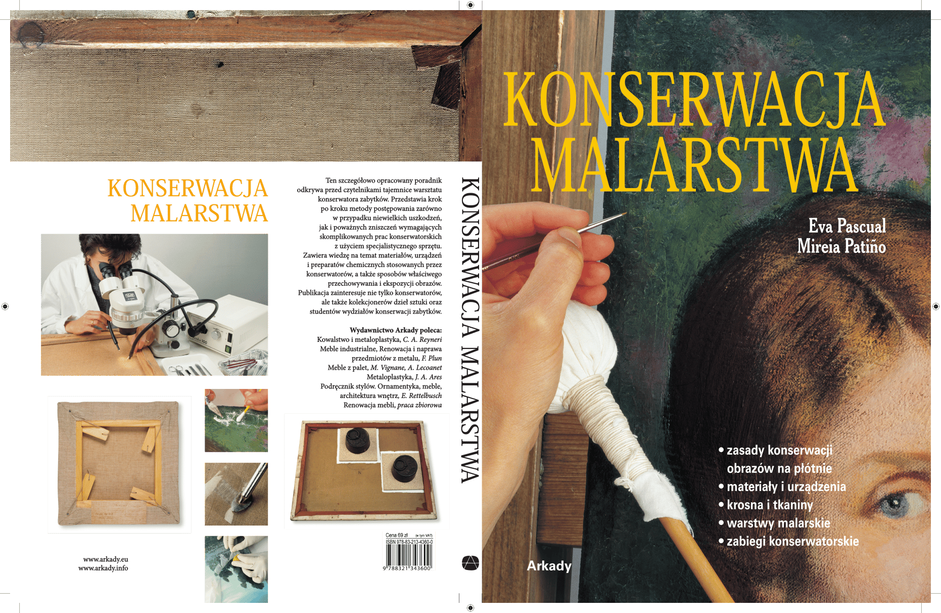 Ten szczegółowo opracowany poradnik odkrywa przed czytelnikami tajemnice warsztatu konserwatora zabytków. Przedstawia krok po kroku metody postępowania zarówno w przypadku niewielkich uszkodzeń, jak i poważnych zniszczeń wymagających skomplikowanych prac konserwatorskich z użyciem specjalistycznego sprzętu. Zawiera wiedzę na temat materiałów, urządzeń i preparatów chemicznych stosowanych przez konserwatorów, a także sposobów właściwego przechowywania i ekspozycji obrazów.