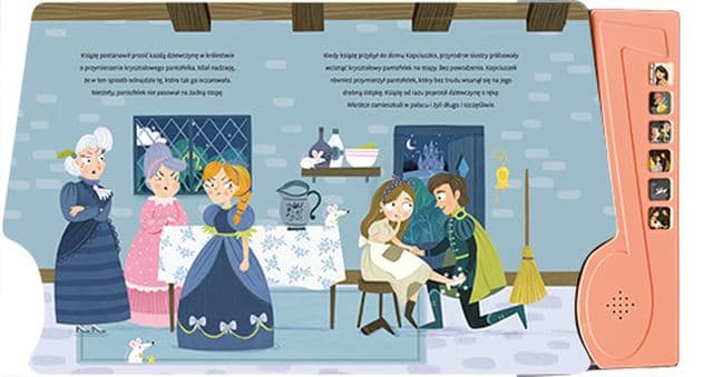 Książka zawiera CZYTANY PRZEZ LEKTORKĘ TEKST BAŚNI odtwarzany po naciśnięciu przycisku po każdej rozkładówce.