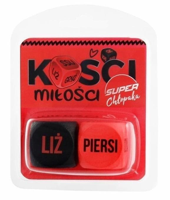 Erotyczna gra w kości dla par. Na jednej kostce znajdują się części ciała, a na drugiej zmysłowe czynności, które mamy wykonywać.