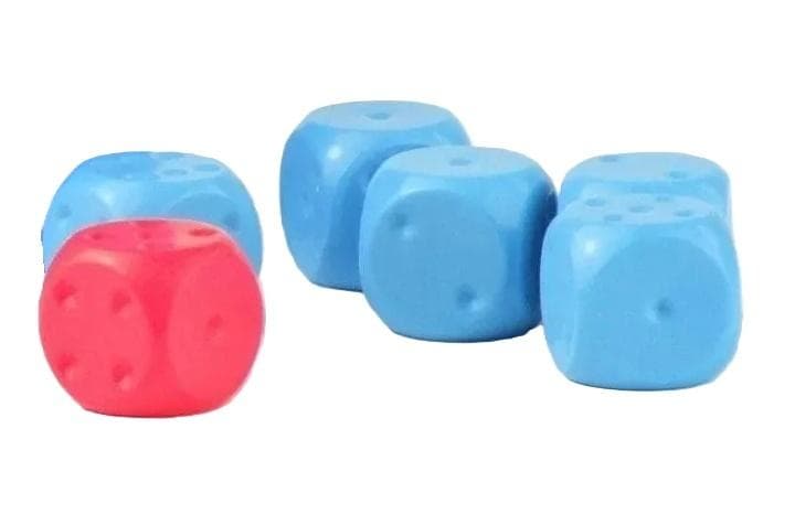Komplet klasycznych, wielokolorowych kostek idealny do wielu gier a także dziecięcych zabaw.