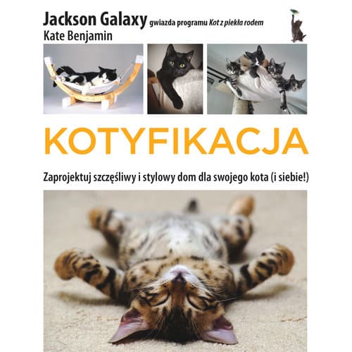 Właściciele kotów wiedzą, jak trudno stworzyć przestrzeń życiową, która jest funkcjonalna zarówno dla ludzi i kotów, a do tego jeszcze dobrze się prezentuje. Nie przystrajajcie swoich domów szkaradnymi wieżami dla kotów i nieładnymi legowiskami kupionymi naprędce w sklepie z artykułami dla zwierząt! W Kotyfikacji Jackson Galaxy, gwiazda serialu Kot z piekła rodem prezentowanego w telewizji Animal Planet, i Kate Benjamin, założycielka popularnej strony Hauspanther.com, zajmującej się projektowaniem sprzętów, gadżetów i udogodnień dla kotów, krok po kroku pokazują czytelnikom, jak zaprojektować atrakcyjny dom stanowiący optymalne otoczenie dla tych cudownych zwierząt. Ta wspaniale zaprojektowana, kolorowa książka zawiera ponad dwadzieścia zabawnych projektów, które można wykonać samodzielnie. Wszelkie pomysły, od legowisk po wybiegi dla kotów zapewne wzbudzą aprobatę opiekunów i mruczków. Kotyfikacja jest przystępnie napisana, zawiera mnóstwo zdjęć i szkiców oraz dużo inspirujących pomysłów. Bez względu na to, czy dzielisz dom z jednym kotem, czy z kilkoma, musisz mieć tę książkę! Są tu świetne projekty na każdą kieszeń i dostosowane do różnych umiejętności. Pięć gwiazdek (na pięć możliwych). Examiner.com Jackson Galaxy i Kate Benjamin wiedzą, jak zmienić twoje mieszkanie w koci raj, bez rujnowania wystroju wnętrz. New York Daily News Nawet jeśli masz dwie lewe ręce, i skromne możliwości finansowe, jest tu całe mnóstwo pomysłów dla różnych ludzi, kotów i domów. Adopt a Pet.com Jackson Galaxy jest kocim behawiorystą i gospodarzem programu Kot z piekła rodem, hitu Animal Planet. Jest też autorem książki Kocia magia. Kate Benjamin założyła w roku 2007 bloga Moderncat, a jej ostatnie śmiałe przedsięwzięcie to popularna strona z projektami dla kotów Hauspanther.com. Jest częstym gościem programu Kot z piekła rodem, gdzie pomaga Jacksonowi tworzyć przyjazne domy dla kotów.