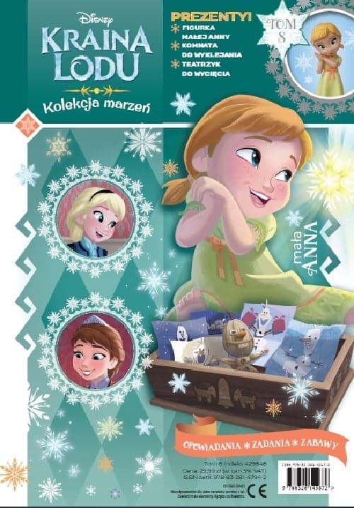 W każdym tomie Kolekcji Marzeń znajdziesz prześliczną ręcznie malowaną figurkę, kolejną część filmowej historii , a także nieznane przygody Anny, Elsy i ich przyjaciół. Do tego czeka Cię mnóstwo zabawy – wycinanki, naklejki, zadania, ciekawostki oraz scenki do wyklejania, dzięki którym zwiedzisz wspaniałe komnaty zamku Arendelle! Kolekcja składa się z 20 tomów, nowy tom w sprzedaży co 2 tygodnie