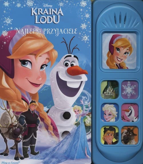 Książka całokartonowa z panelem dźwiękowym. Księżniczka Anna, bohaterka ulubionego przez dzieci filmu „Kraina lodu“, przedstawia swoich najbliższych przyjaciół: władającą niezwykłą mocą siostrę Elsę i wyczarowanego przez nią bałwanka Olafa, dzielnego Kristoffa i jego renifera Svena. Siedem magicznych dźwięków przeniesie czytelników do mroźnego Arendelle!