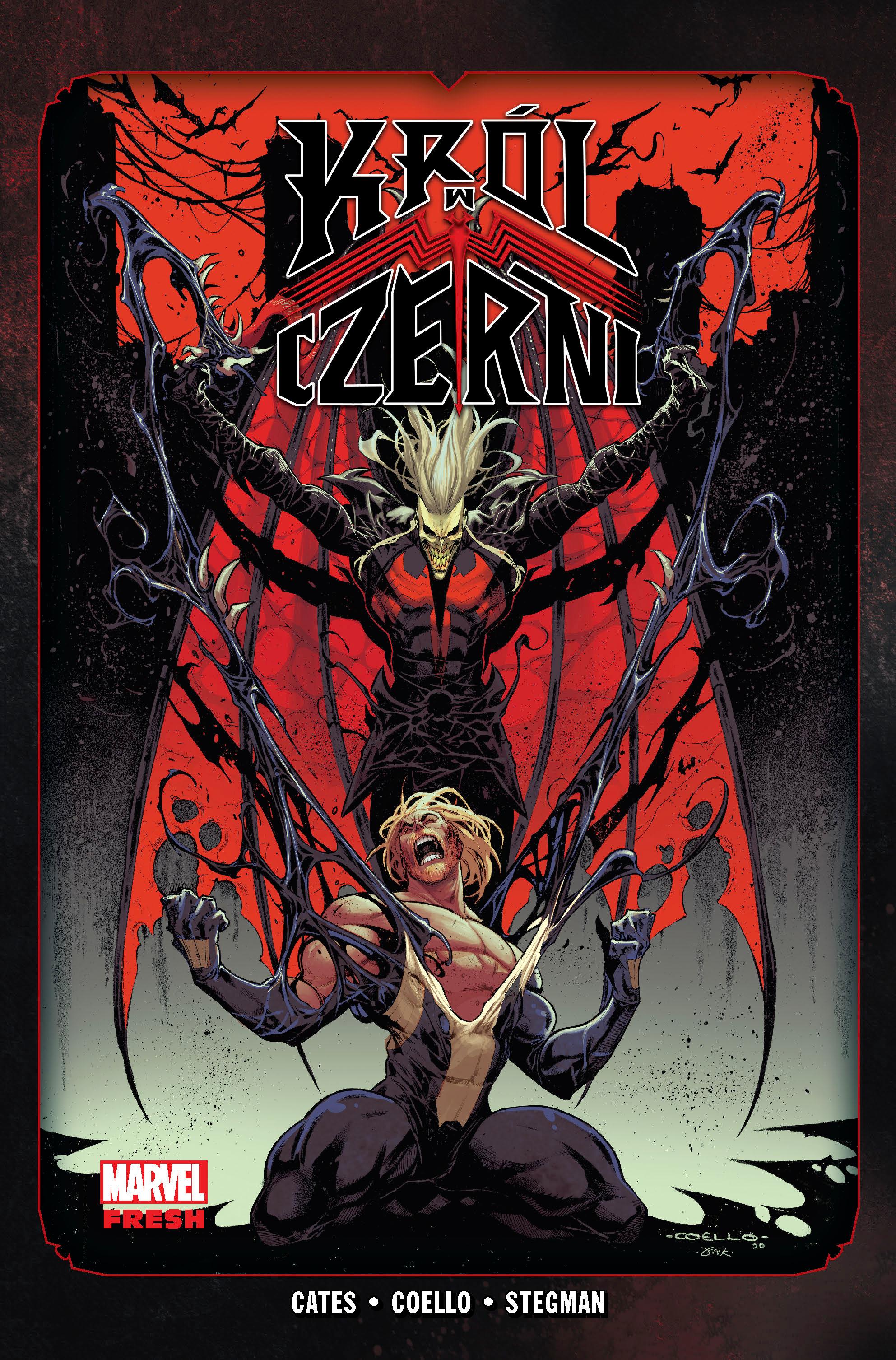 Mroczny bóg Knull dotarł na Ziemię, ale… nie jest sam. Towarzyszy mu horda smoczych symbiontów! Venom dobrze wie, do czego są zdolne te stwory, i choć ma wsparcie najpotężniejszych ziemskich bohaterów, starcie z wszechmocnym bogiem pustki i jego straszliwymi sługami może go kosztować więcej, niż jest gotów zapłacić. Czy mimo to uda mu się obalić króla w czerni i ocalić swojego syna? Przedstawiamy wielki finał głośnej, utrzymanej w klimacie horroru i thrillera psychologicznego opowieści o Venomie autorstwa Donny’ego Catesa, scenarzysty znanego z serii „Doktor Strange” czy „Thanos”. Rysunki stworzyli między innymi Iban Coello („Deadpool & the Mercs for Money”) i Ryan Stegman („The Superior Spider-Man”, „Wolverine: Trzy miesiące do śmierci”). Album zawiera zeszyty #1–5 miniserii „King in Black” oraz #31–35 serii „Venom”.