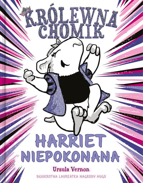 Nowa seria, która zmieni wszystko, co do tej pory myśleliście o królewnach, baśniach, książkach i komiksach. Harriet Chomikowska nie jest typową królewną z bajki. Może i nieźle odnajduje się w świecie gryzoni, ale nie jest zbyt dobra w dostojnym kroczeniu po pałacu w oparach melancholii. Jej zdaniem królewskie życie jest raczej… nudnawe. Ale pewnego dnia rodzice Harriet wyjawiają jej straszliwą tajemnicę – tuż po narodzinach królewny została na nią rzucona straszliwa klątwa. Kiedy będzie miała dwanaście lat, ukłuje się chomiczym kołowrotkiem i zapadnie w sen podobny do śmierci… Typowa królewna zalałaby się łzami rozpaczy. Ale nie Harriet! Przecież klątwa musi się wypełnić, a to oznacza, że aż do dnia dwunastych urodzin Harriet będzie NIEPOKONANA! Może teraz rozpocząć życie pełne przygód i NIC JEJ SIĘ NIE STANIE! Póki nie nadejdzie ten dzień, kiedy klątwa spełni się w najbardziej nieoczekiwany sposób… Ursula Vernon – laureatka Nagrody Hugo za najlepszą powieść graficzną, wielokrotnie nagradzana autorka i ilustratorka.
