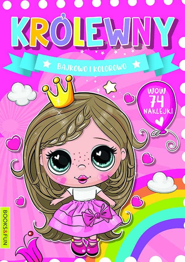 KRÓLEWNY TO KOLOROWANKA Z FANTASTYCZNYMI, BAJKOWYMI RYSUNKAMI ŚLICZNYCH KRÓLEWIEN, KTÓRE TYLKO CZEKAJĄ, AŻ JE POKOLORUJESZ I OZDOBISZ. A DODATKOWO ZNAJDZIESZ W KSIĄŻECZCE PIĘKNE NAKLEJKI.